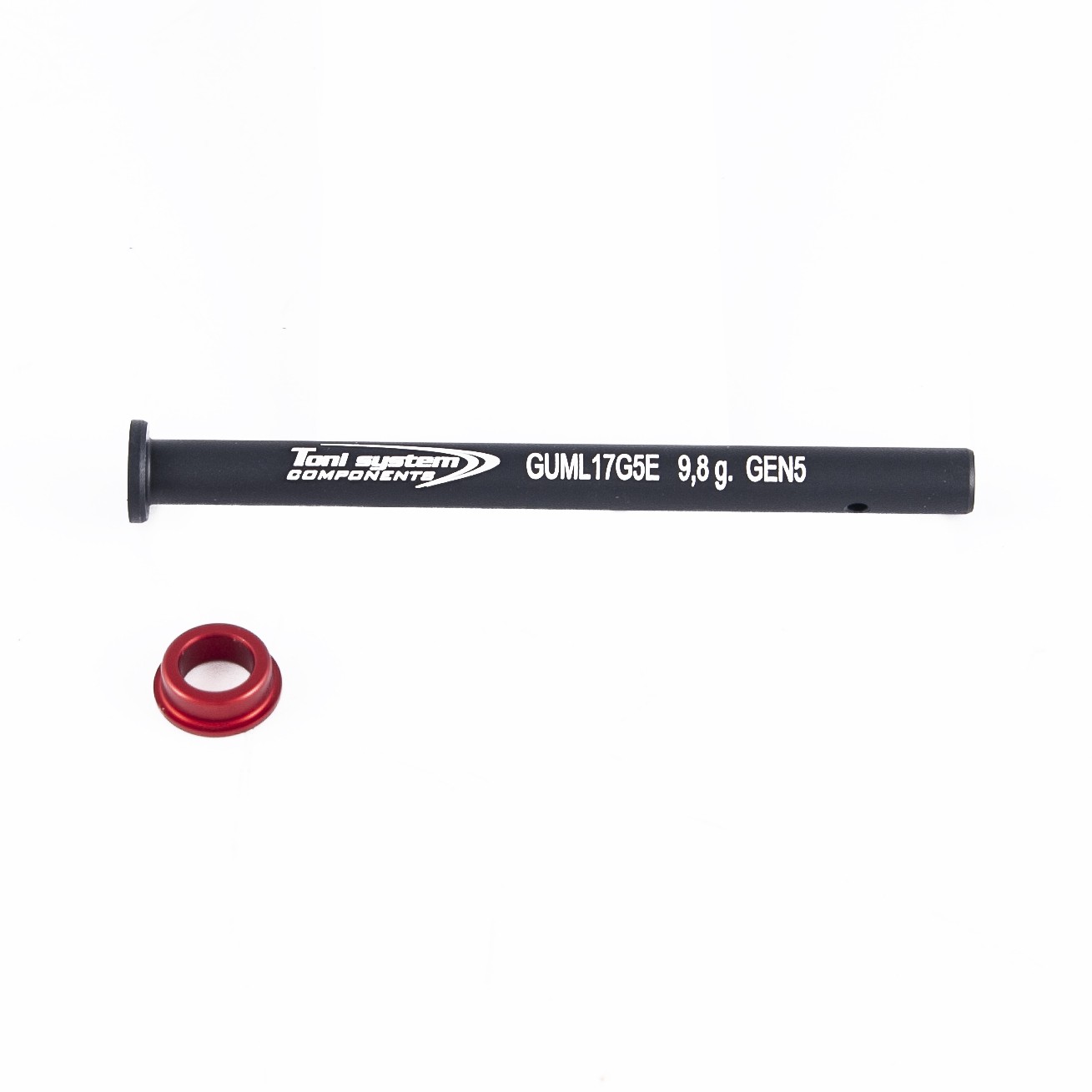 Lightweight ergal guide rod for Glock Gen.5 models (17–17L–22–24–31–34–35). Reduces firearm weight while maintaining accuracy and reliability. Use with Toni System springs.