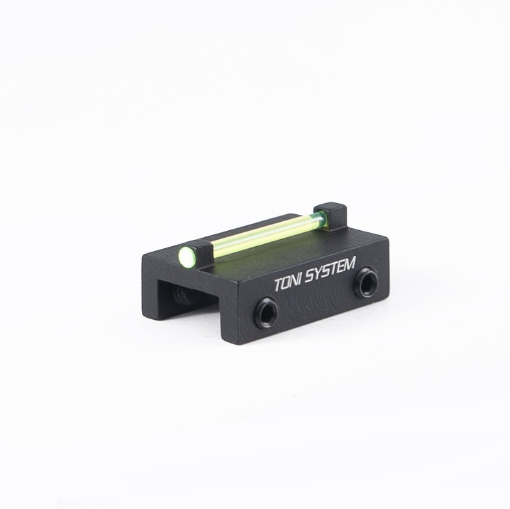 Toni System front sight for vent ribs under 8.1 mm – 1.5 mm green fiber optic and 4-set-screw mounting for precision and control