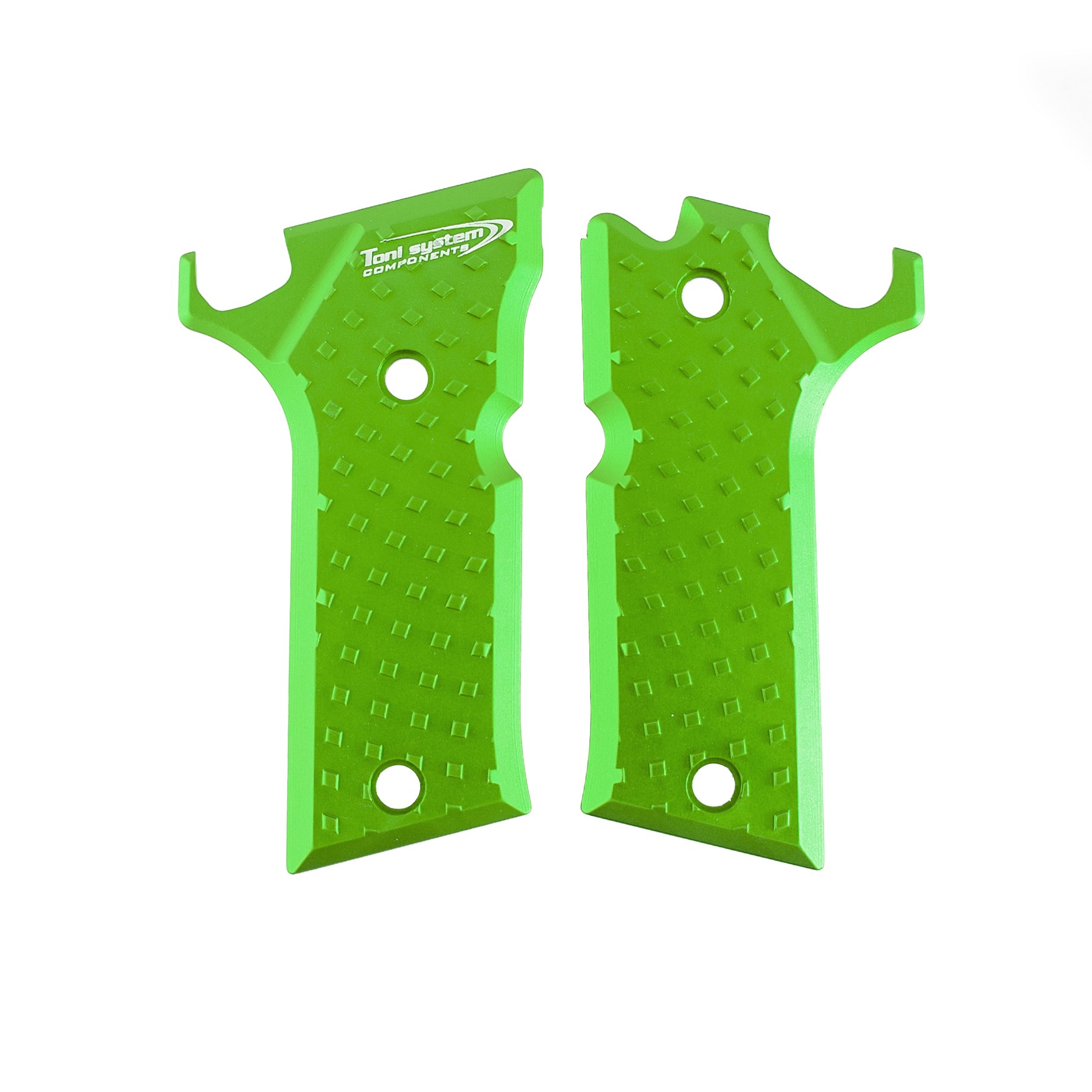 Guancette in alluminio modello vybram, progettate per Beretta 92X. La superficie presenta una trama grippante ottenuta direttamente dalla lavorazione dell’alluminio, studiata per garantire una presa sicura e costante durante il tiro dinamico, Profilo slim, ideali per tiratori con mani medie o piccole e compatibili con minigonna. Perfette per il tiro dinamico.