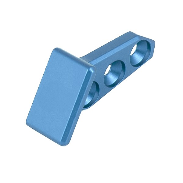 Poggiadito a 3 fori progettato per il montaggio sul lato destro della pistola, ideale per tiratori mancini che cercano un supporto ergonomico e stabile. L’appoggio del dito ha un’inclinazione di 47° rispetto alla linea della canna, con una posizione spostata verso l’alto di circa 9 mm per garantire una presa naturale e confortevole. La superficie di appoggio misura 21x14,8 mm, mentre l’interasse dei fori è di 10 mm, consentendo un fissaggio solido e regolabile. Le viti sono incluse, ma devono essere adattate in base al modello dell’arma. Questo poggiadito offre un supporto efficace per il dito indice, migliorando il controllo dell’arma, la precisione e la rapidità di sparo.