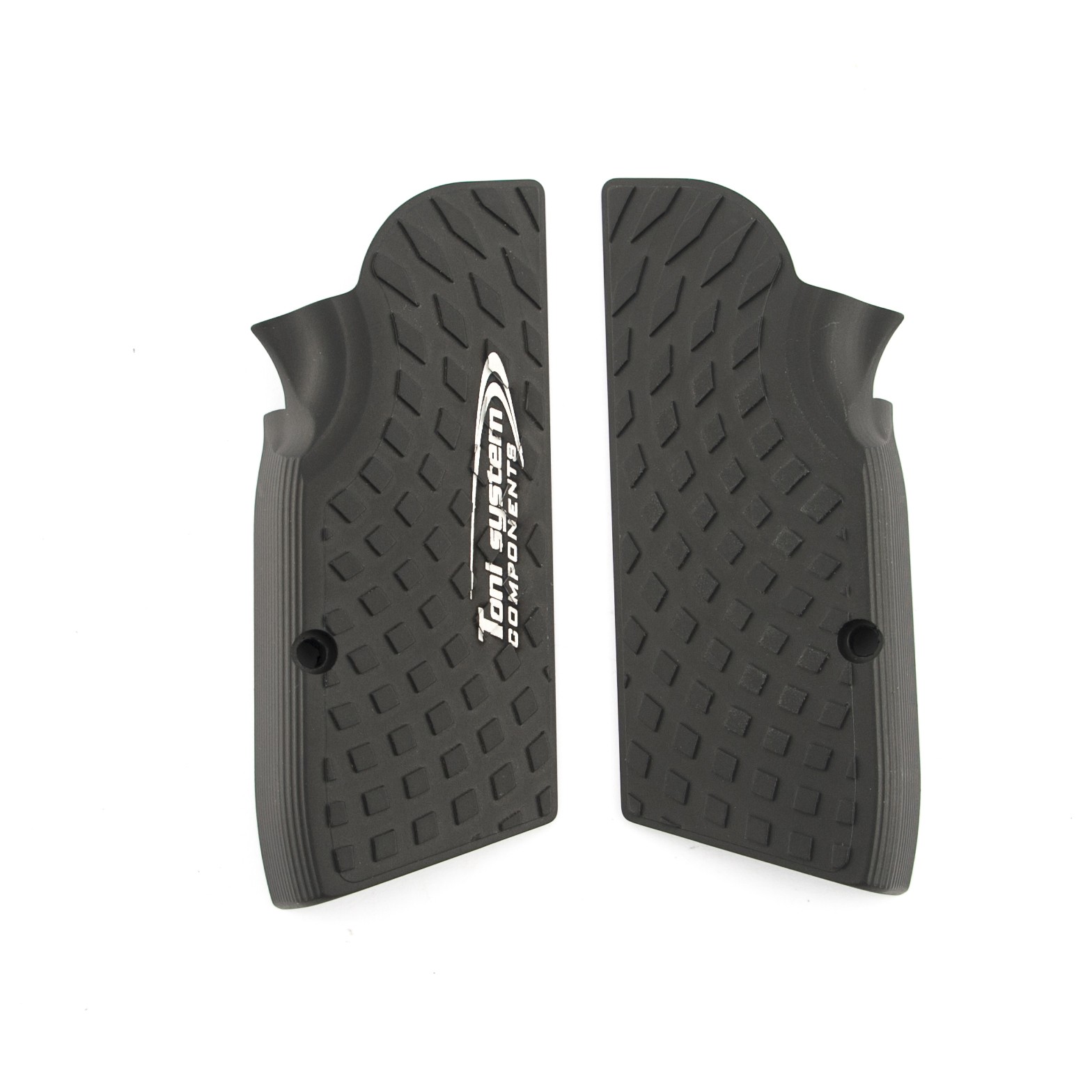 Guancette vybram per FK BRNO. La superficie presenta una trama grippante ottenuta direttamente dalla lavorazione dell’alluminio, studiata per garantire una presa sicura e costante durante il tiro dinamico