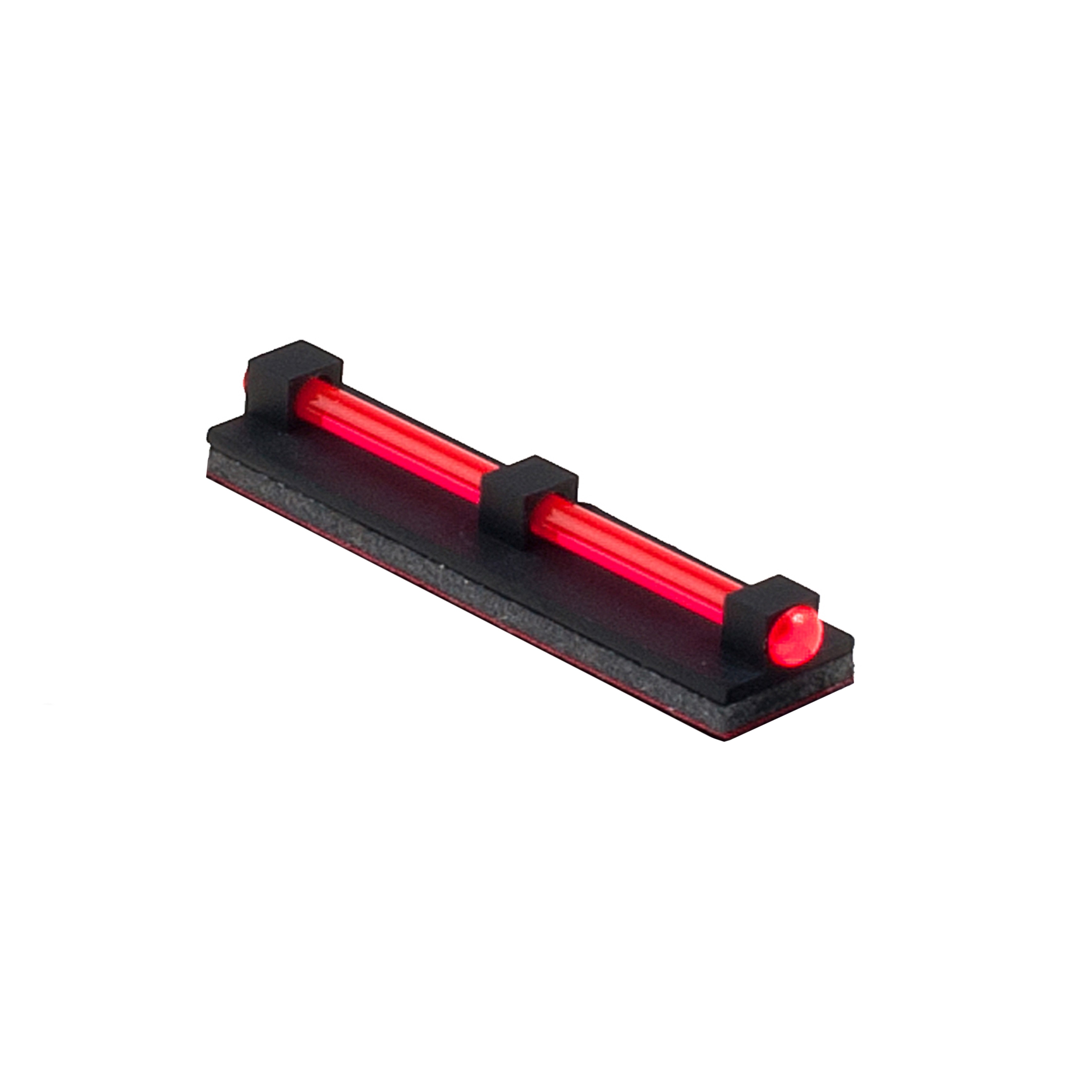 Mirino adesivo in polimero dotato di fibra ottica rossa di diametro 1,5 mm, lunghezza totale 25 mm e larghezza base 5 mm. Facile da applicare, migliora la visibilità del punto di mira in condizioni di scarsa luce, ideale per armi sportive e tattiche.