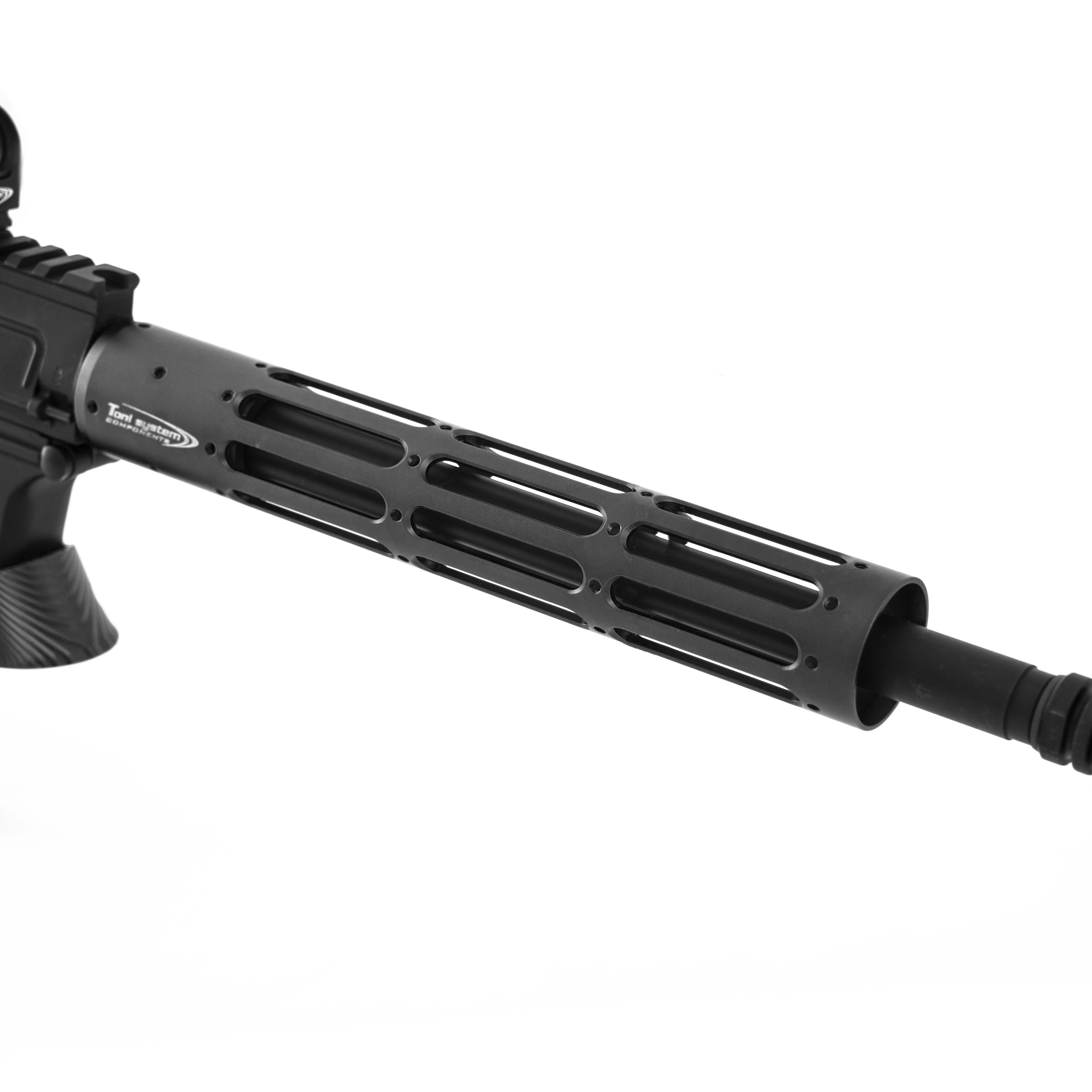 Tubo astina paramano ventilato con 3 asole, progettato per carabine AR9 e PCC calibro 9mm. Con una lunghezza di 243,5 mm (9,59 pollici) e diametro esterno di 40 mm, rappresenta la soluzione ideale per canne da 10,5" e 11". Realizzato in alluminio leggero e resistente, assicura una presa stabile e una buona dissipazione del calore, migliorando comfort e controllo durante il tiro. Il design compatto ed ergonomico è pensato per l’impiego sportivo o tattico, compatibile con configurazioni AR9 standard.